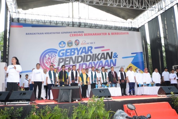 SUARAMEDIASARANA.COM | DELI SERDANG – Kementerian Pendidikan dan Kebudayaan (Kemendikbud) memberikan bantuan pendidikan sebesar Rp739,6 miliar kepada Kabupaten Deli Serdang, Provinsi Sumatra Utara, dalam acara Gebyar Pendidikan dan Kebudayaan 2019. Sekretaris Jenderal Kemendikbud, Didik Suhardi menyerahkan bantuan secara simbolis kepada Bupati Deli Serdang, Ashari Tambunan, di Alun-Alun Pemerintah Kabupaten Deli Serdang, Sabtu, (30/3/2019).